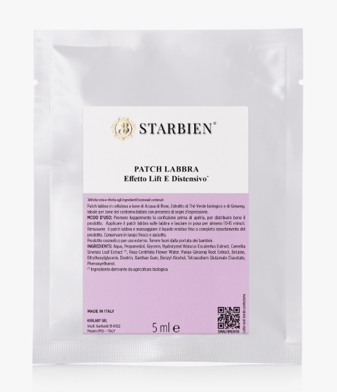 Patch labbra ideato appositamente per il trattamento cosmetico della zona del contorno labbra. Il complesso idrolizzato di ibisco svolge un’azione distensiva sui segni d’espressione, in sinergia con l’acqua di rose, l’estratto di tè verde biologico e di ginseng la pelle apparirà tonica e compatta.